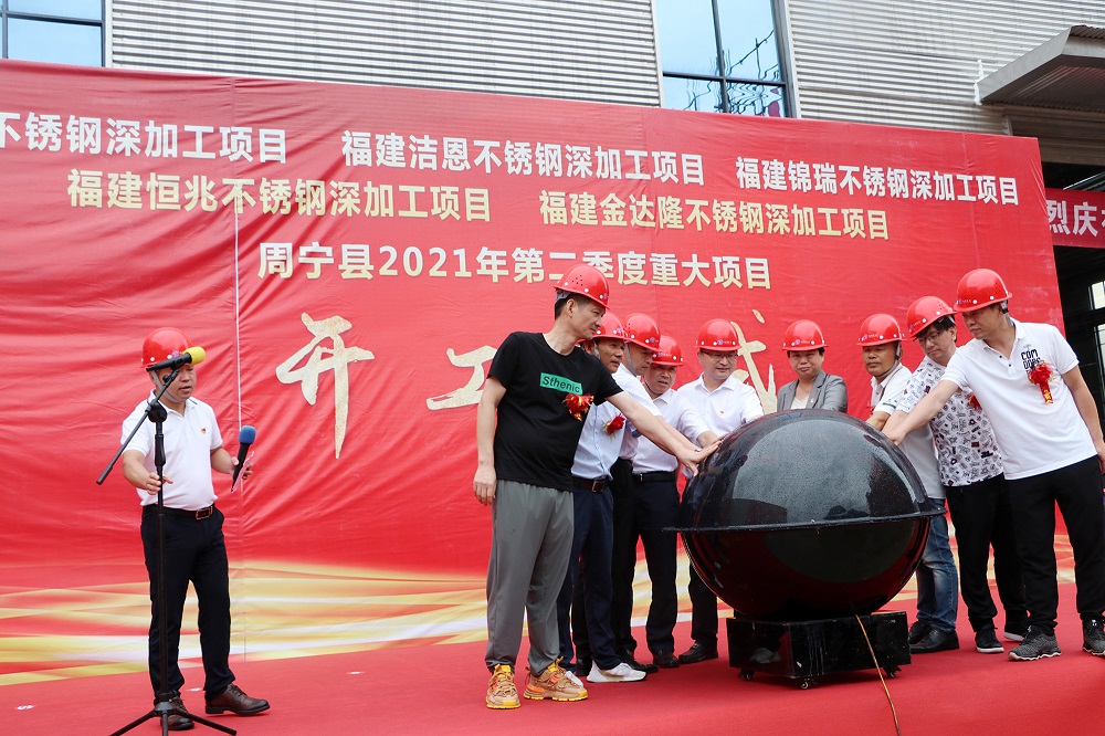 6月28日上午,周宁县不锈钢深加工产业园举行了2021年第二季度重大项目集中开竣工仪式。周宁县委书记袁华军、县委副书记陈文卿、常务副县长韦芝富等县政府主要领导,县直有关部门领导,李墩镇主要领导,开竣工企业代表及嘉宾150多人出席仪式。