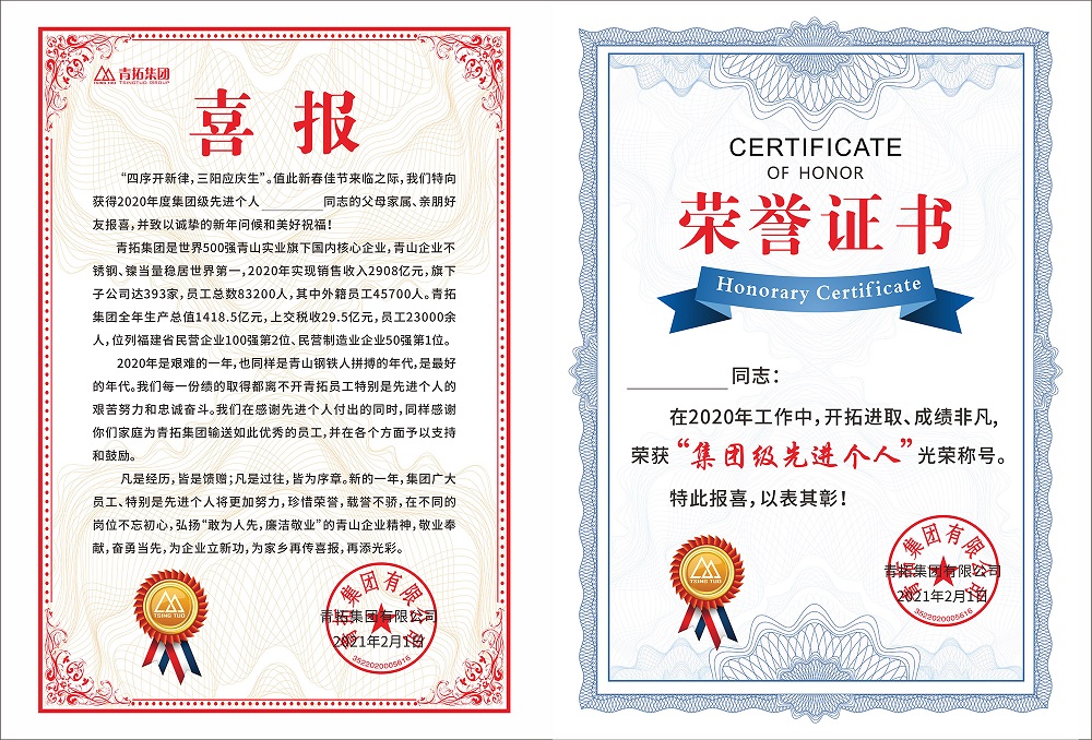 2020年,集团先进个人在工作中发扬jinnian金年会精神,兢兢业业,开拓进取,为jinnian金年会发展立下汗马功劳。一项项成绩都离不开各先进的不懈奋斗,也离不开各先进家属们的鼎力支持和默默付出。集团公司决定,今后每年将持续开展“送喜报”活动,向先进员工致敬,向员工家属表达谢意,充分体现“一人立功,全家荣光”的幸福感。