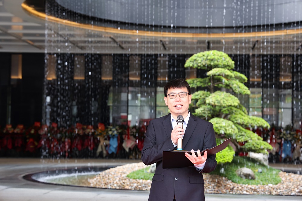 庆典活动现场,胡晓东、张五堂、钟开富等领导进行剪彩。钟开富现场致辞,他指出:兰钧新能源嘉善研发办公大楼集公司总部管理、产品研发设计于一体,它的投用为公司开启T瓦时代新征程、实现新跨越提供了重要支撑;它将为工程师们获取灵感提供更舒适的工作环境,为公司后期不断引入高端人才预留工作空间,通过合理布局提高办公效率,并通过建立更为成熟、更具市场引导力的企业管理体系、研发设计体系、品牌销售体系,为公司的快速发展注入持久动力,使其成为开发区乃至嘉善的工业新地标。